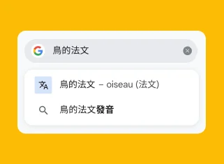只要輸入「[字詞] 的 [語言]」,就可以即時翻譯字詞或詞組。